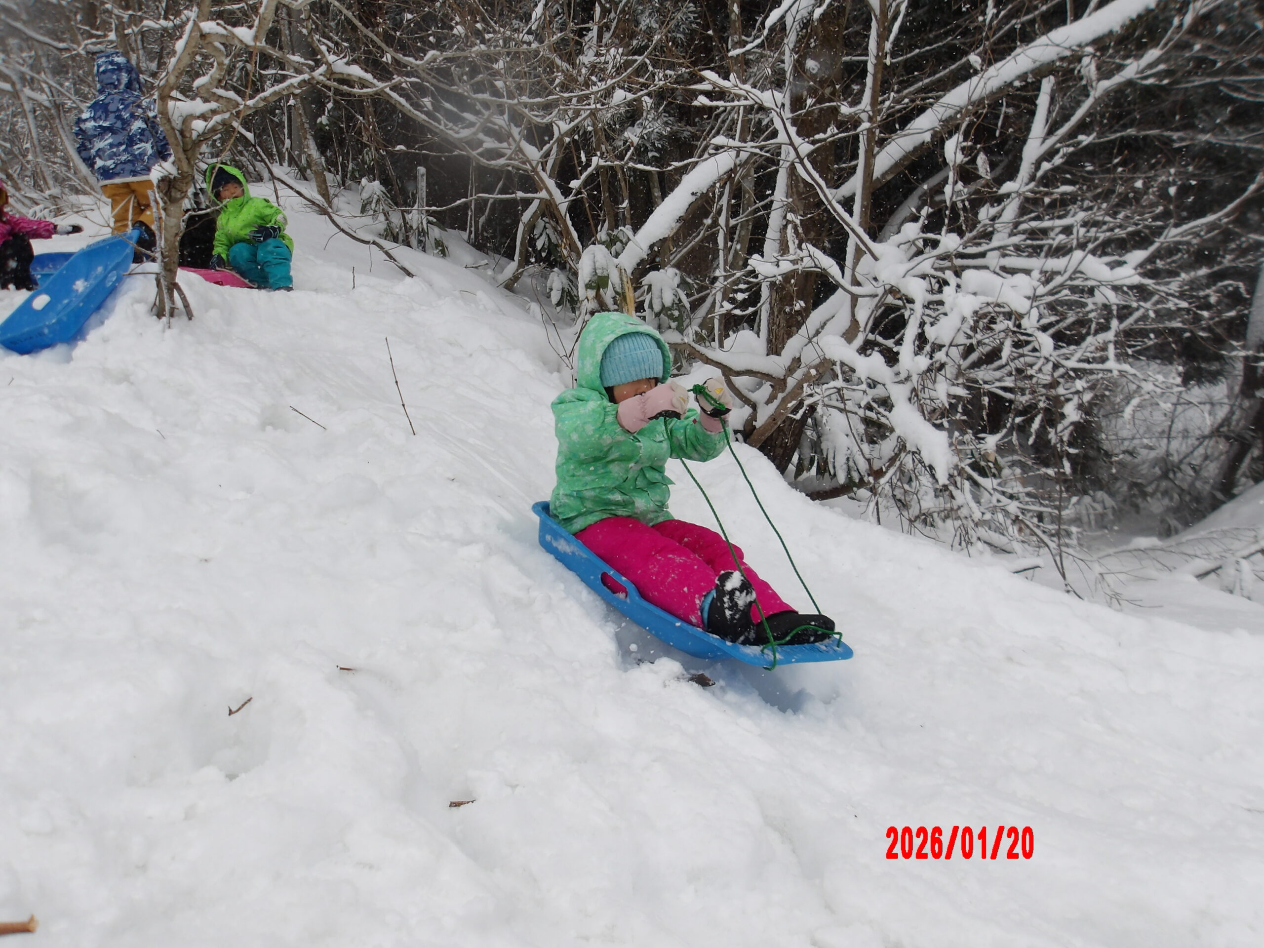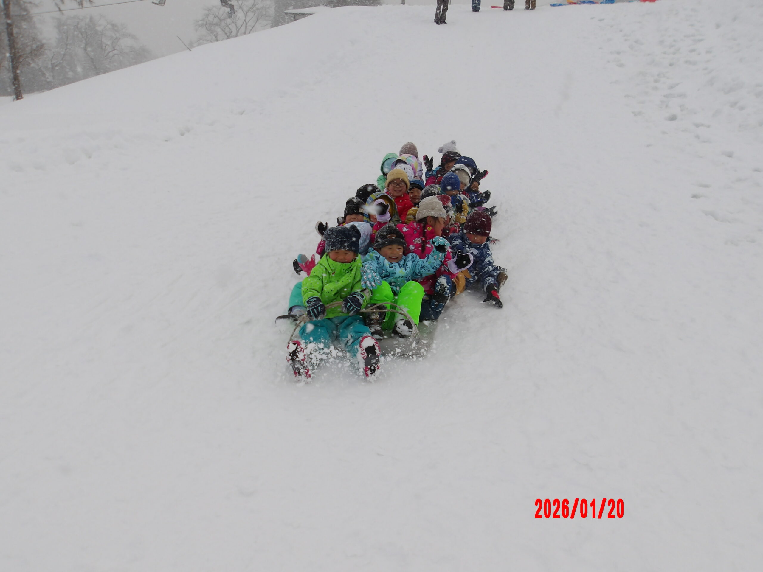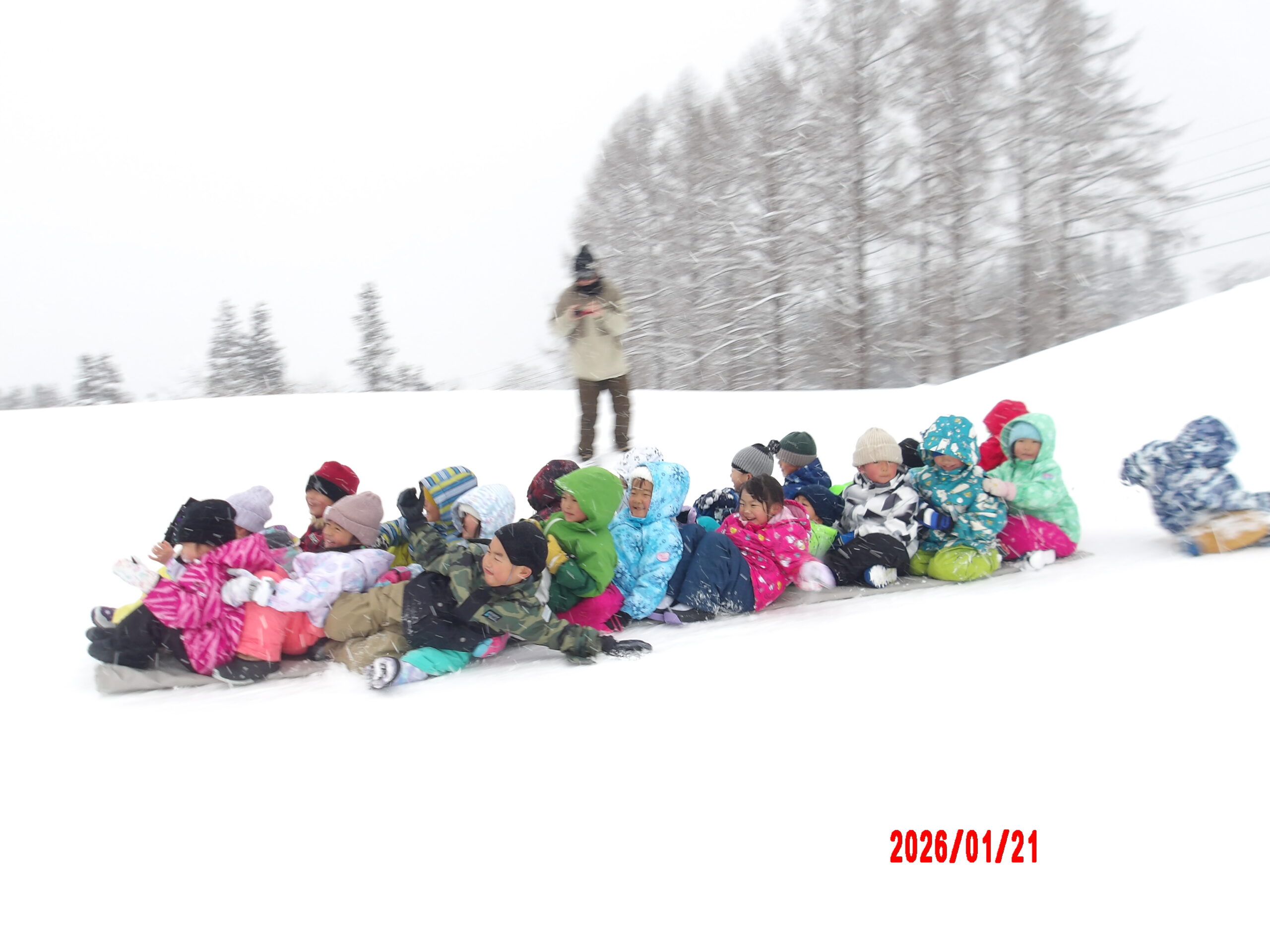 2026/02/19 つばめ組 そり遊び つばめ組さんが、1泊2日のソリ遊びに出かけました。 出発の数日前から、子どもたちは大きなダンボールを使って何やら制作活動に夢中‼?。 話を聞いてみると、「みんなで乗れるソリをつくるんだ!」と、仲間と力を合わせて特大ソリづくりに挑戦していました。 迎えた当日。 舞子スキー場の一面に広がる雪の世界に子どもたちの目はキラキラ。 自分たちで作ったソリを手に、斜面を何度も滑り降りたり、雪の感触を楽しんだりと、冬ならではの遊びを思いきり満喫してきました。