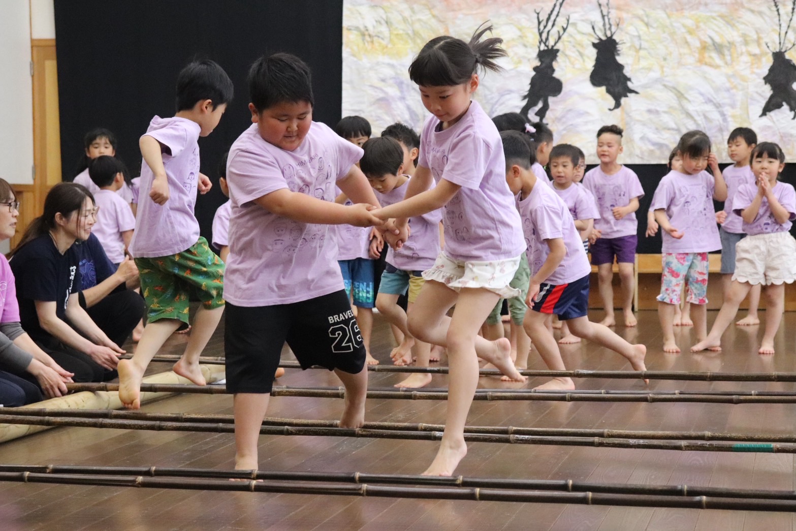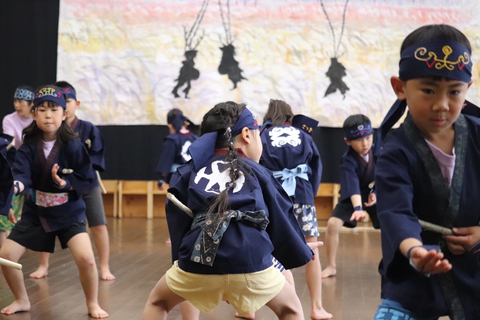 今年は、リズム アイヌの踊り 竹踊り 鹿踊りなどの、伝統文化や宮澤賢治の文学を取り入れたぞう組さん。どの子も自信に満ちた姿を見せてくれました。そして、今年の卒園児は 1,000名を超えました。